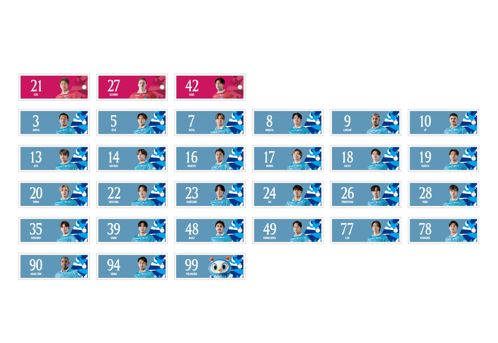 ■ラインナップ:全29選手+フリ丸の全30種類 ※特別指定、2種登録選手を除く