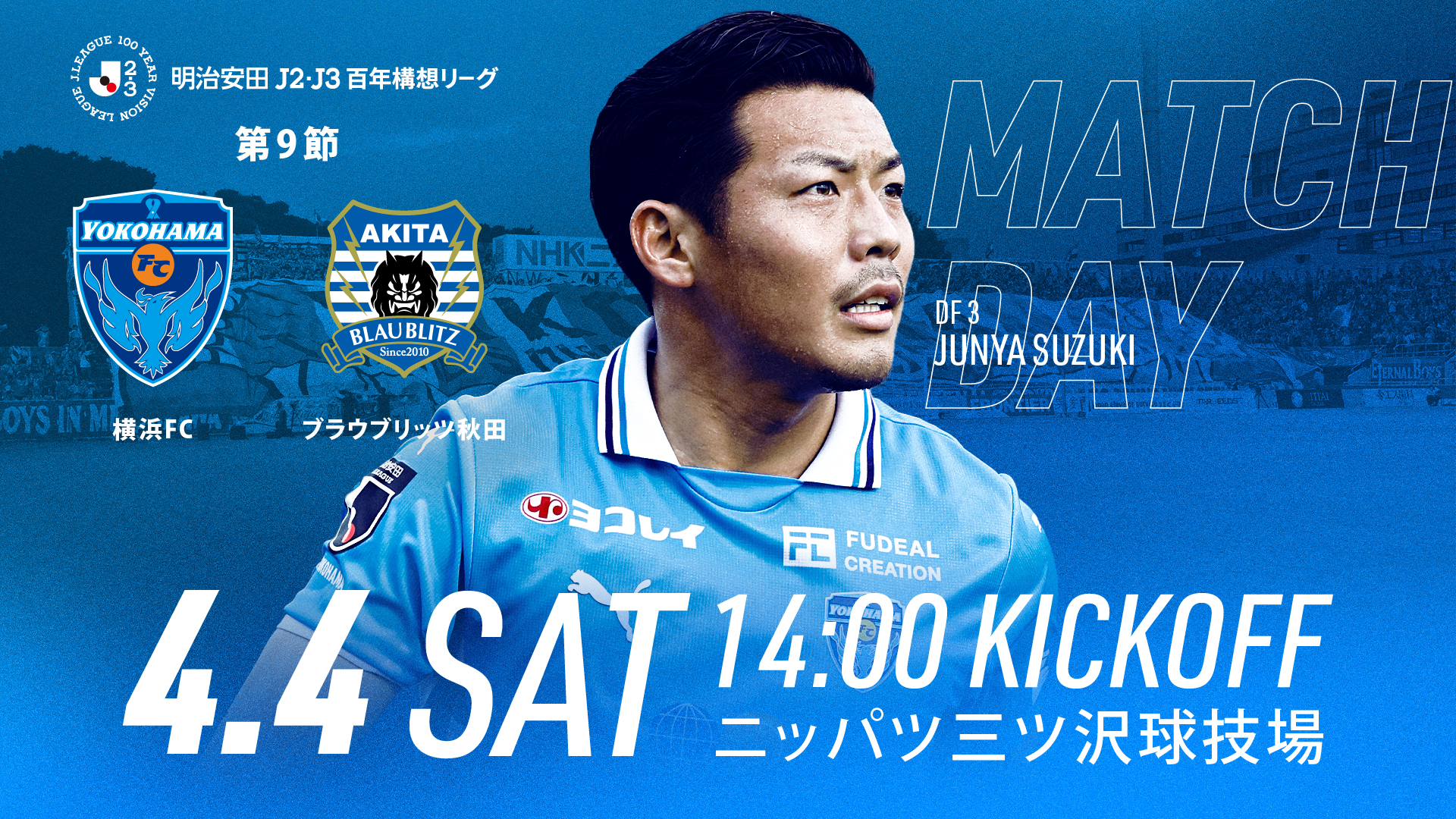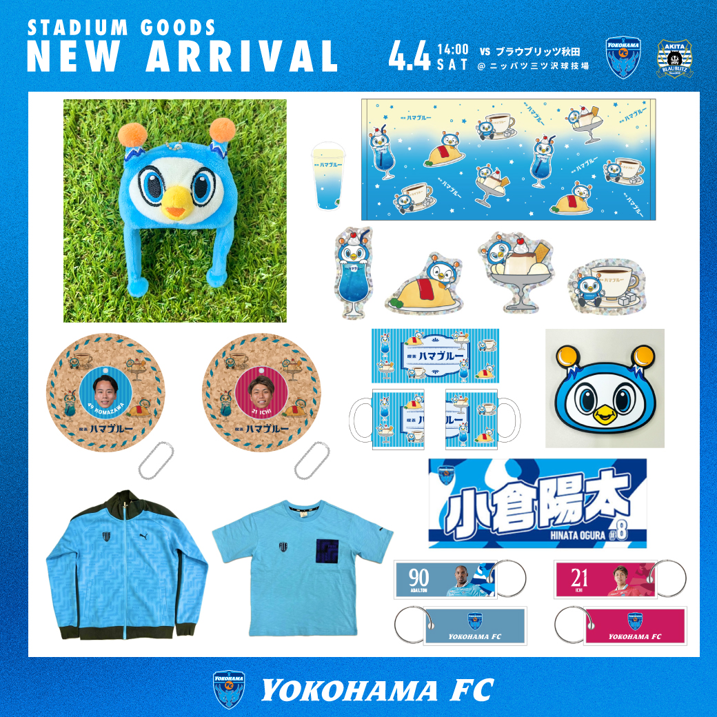 4月4日(土)明治安田J2・J3百年構想リーグ 第9節 ブラウブリッツ秋田戦(ニッパツ三ツ沢球技場/14:00KICKOFF)のグッズ情報をお知らせします。
