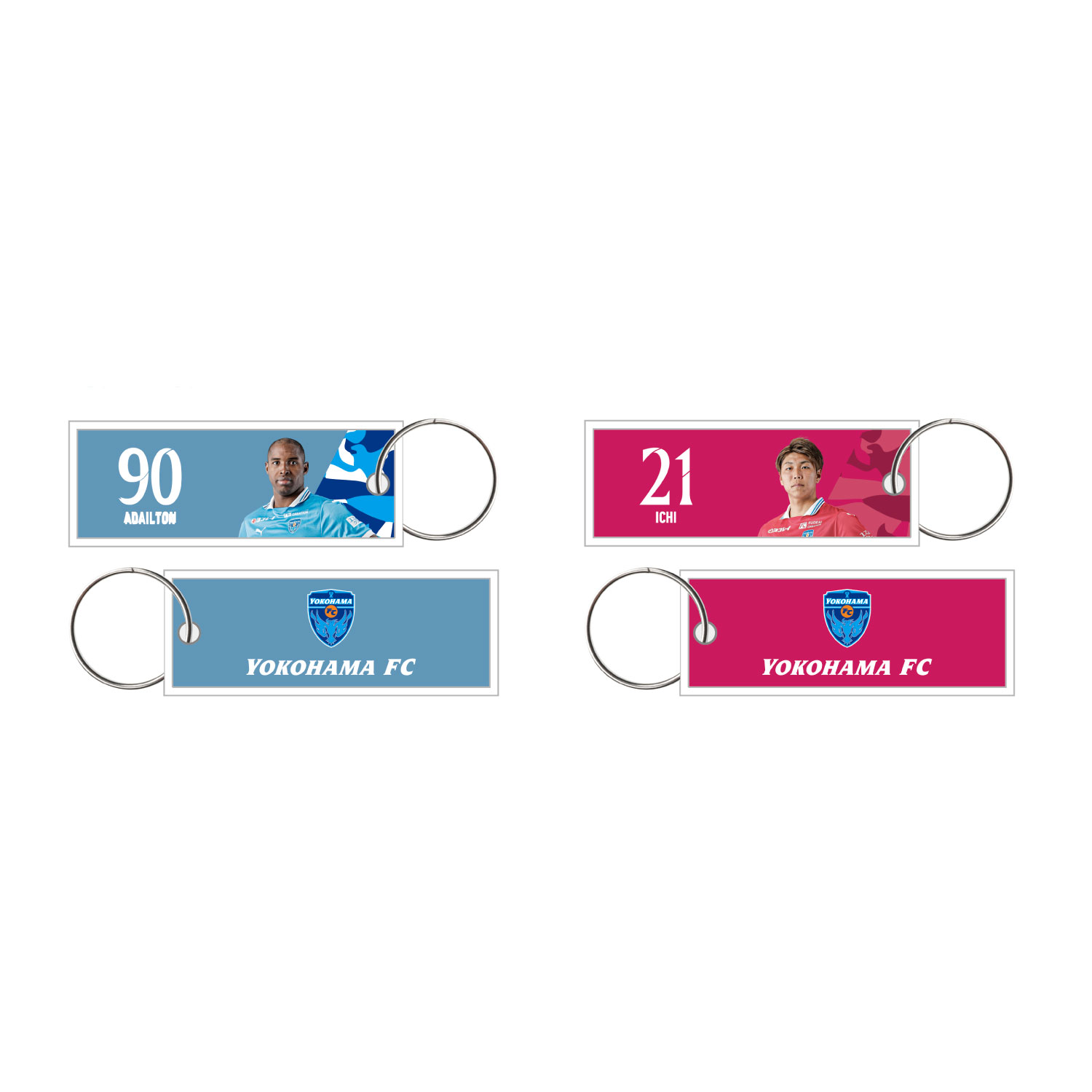ミニフライトタグキーホルダーが新登場!表面は選手の写真と背番号・選手名が入ったデザインで、裏面は横浜FCエンブレムが入っています。推しの選手の他のキーホルダーとレイヤードして付けるのもおすすめ!普段お使いのバッグに付けて、全国各地を巡ってみてはいかがでしょうか?ぜひ推しの選手をゲットしてください!