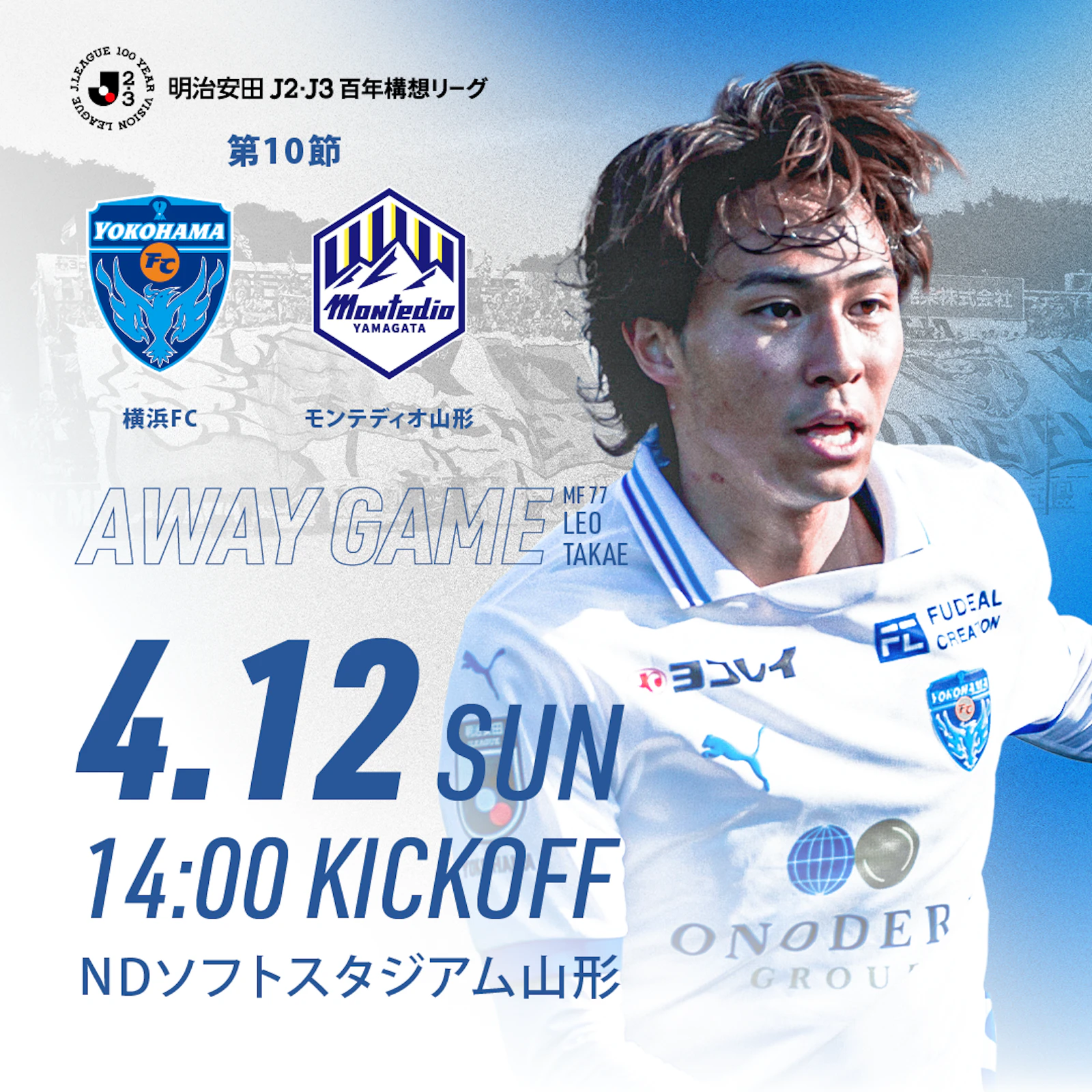 4月12日(日)に開催される「明治安田J2・J3百年構想リーグ 地域リーグラウンド 第10節 モンテディオ山形戦」のアウェイ試合情報につきまして、以下の通りお知らせいたします。