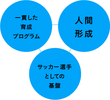 少年から大人になるまでの成長過程で、多くの時間をサッカーに費やす選手に対して真剣に向き合い、将来を見据えたプログラム・質の高い指導及びサッカーに集中できる環境を整え、中期的・長期的に選手たちのポテンシャルを最大限に引き出し、将来のプロサッカー選手育成を目指します。