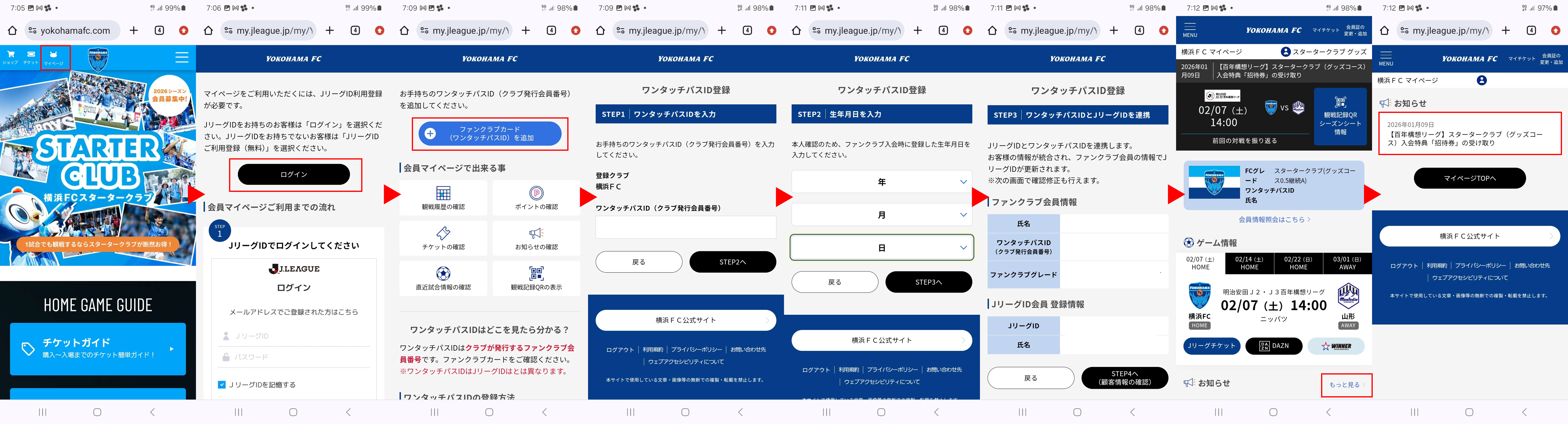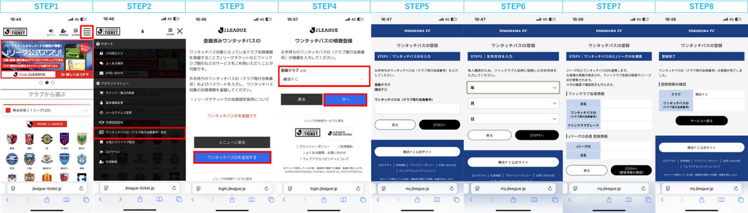⑦ワンタッチパスIDとJリーグIDの連携方法
