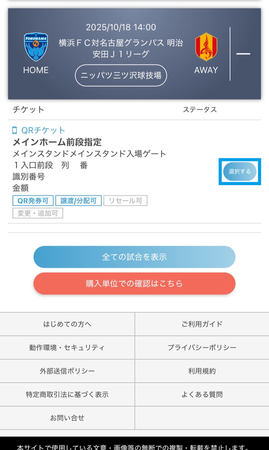 行けない試合は所定の手続きを行えばチケットを他の方に販売・譲渡することが可能です。