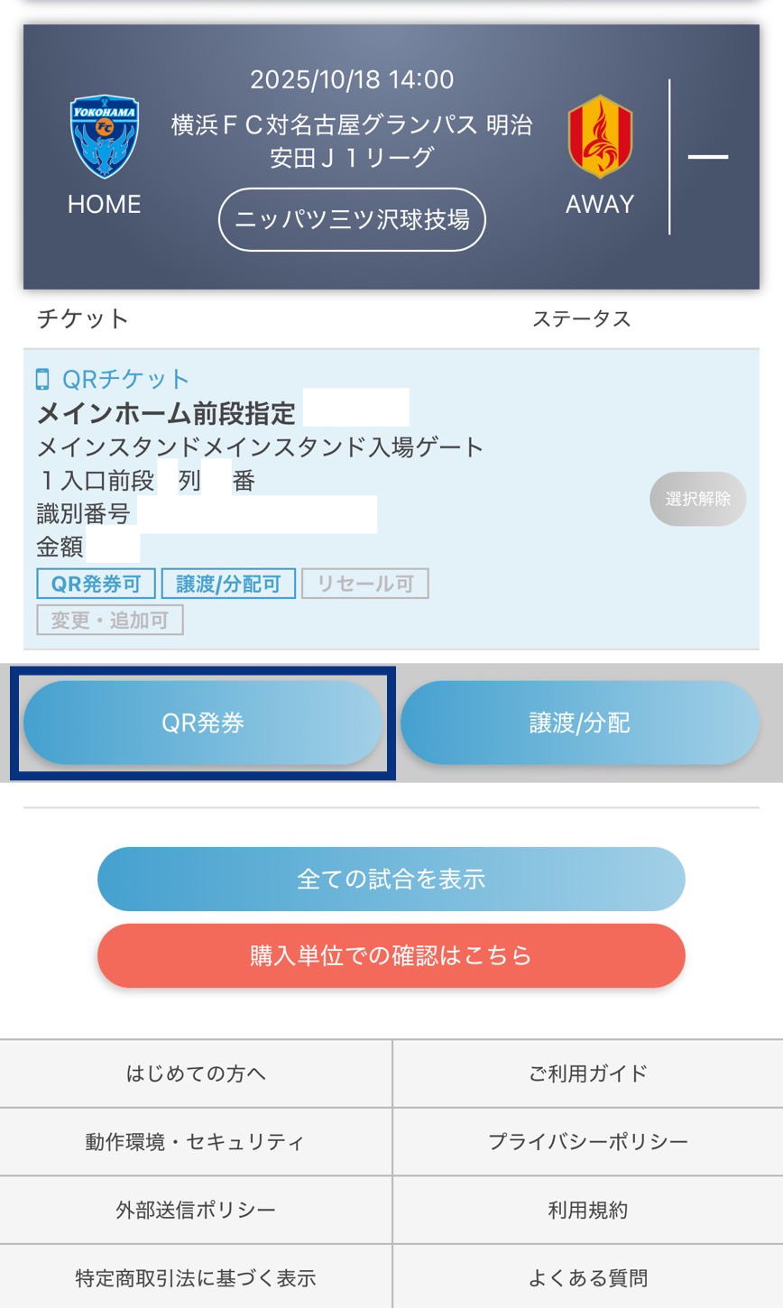 「チケット一覧/QR発券」を押す