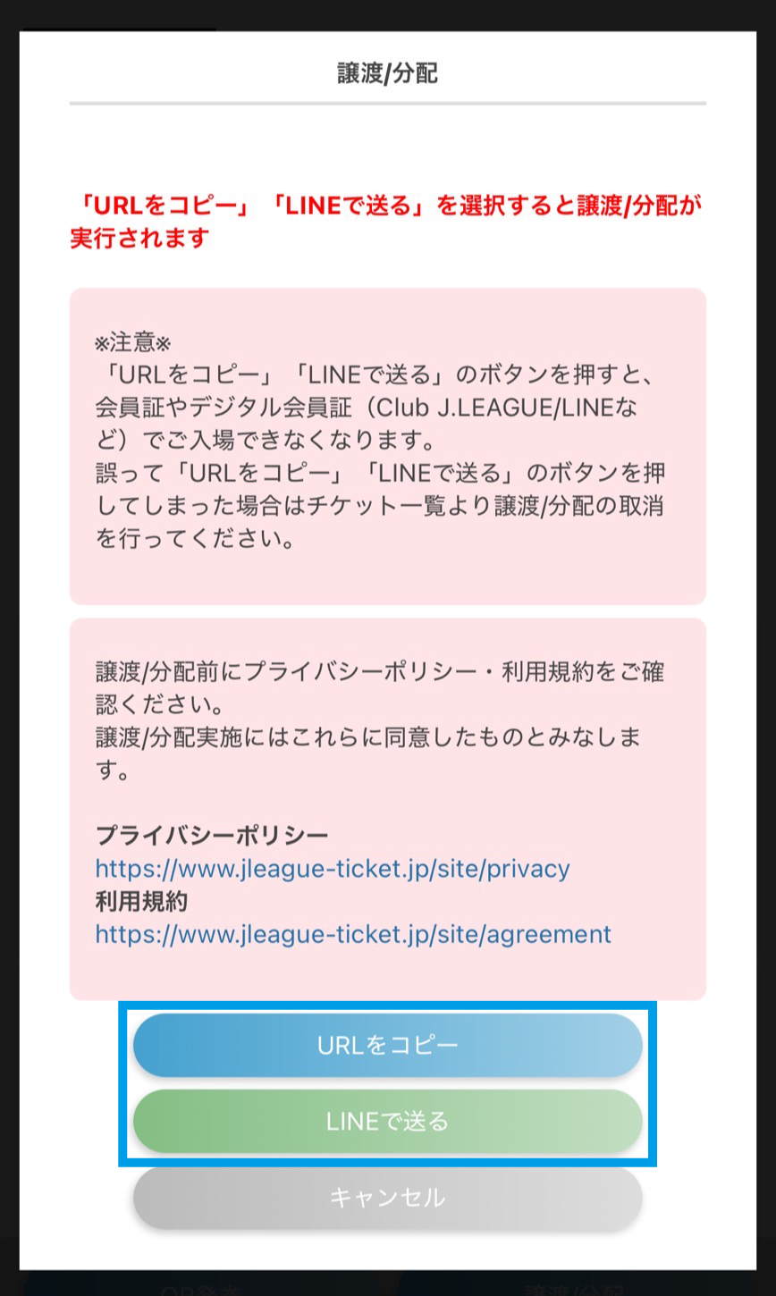 「譲渡/分配」からLINE等で送付することも可能です!